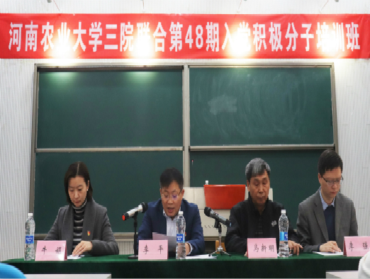 本网讯(通讯员 张 玥 秦梦瑶)11月14日,信管、文法、国教三个学院分党校联合举办的“河南农业大学第48期入党积极分子培训班”在龙子湖校区教学楼大教室二隆重开班。校党委委员、组织部部长李平、动漫疯