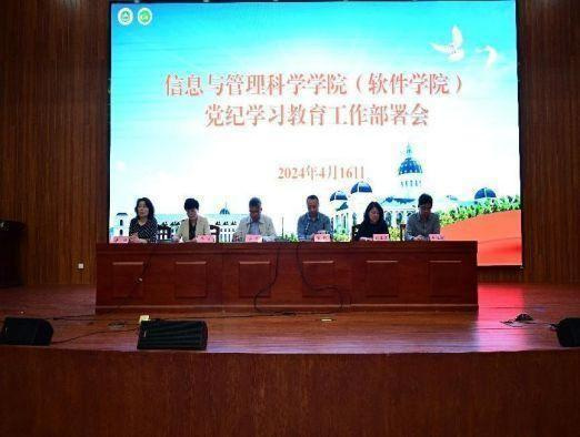 本网讯(通讯员郭潇)近日,信息与管理科学科学院于龙子湖校区召开党纪学习教育工作部署会,学习贯彻修订后的《中国共产党纪律处分条例》,落实党中央、省委、校党委党纪学习教育工作要求,对学院党纪学习教育进行全面部署。院领导班子成员、全体教职工及学生党员代表参加会议。会议由院长陈振主持。