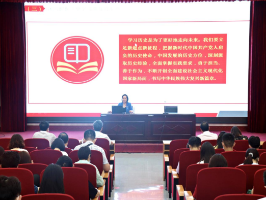 尹新明以《奋斗百年路 启航新征程》为主题从三个方面进行了详细阐述,一是深入开展党史学习教育。充分认识开展党史学习教育的重大意义,全面了解中国共产党百年奋斗的光辉历程和历史性贡献,把握党史学习教育的重点,真正做到学懂弄通做实;二是掌握党的百年历史线索。从四个历史时期为脉络进行论述,只有中国共产党,才能救中国;只有中国共产党,才能发展中国。三是汲取党百年奋斗基本经验。在革命历史中从理论指导、理想信念、组织优势、群众基础、自我革命等方面汲取未来前进的智慧。