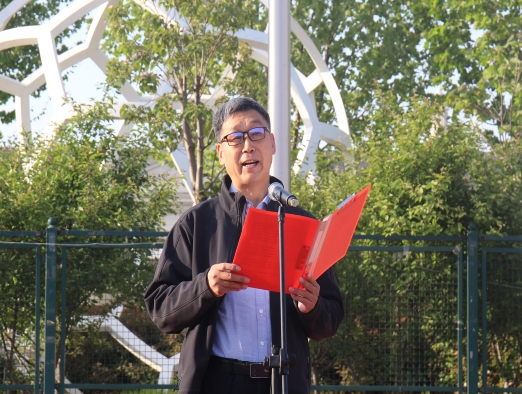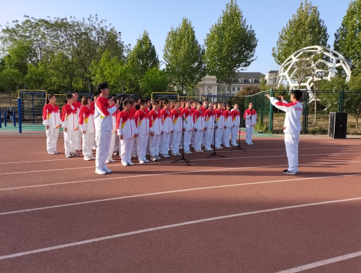 本网讯(通讯员 郭潇 黎逸帆)4月19日,学院于龙子湖校区田径场举办了“重温红色记忆,争做时代新人”爱国升旗仪式,仪式由院长陈振主持,全院师生参加此次活动。