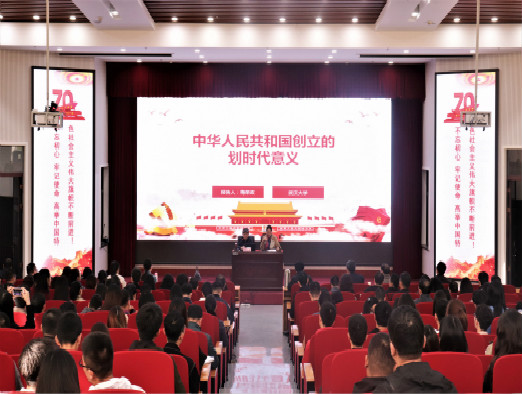 师生作了一场题为“中华人民共和国成立的划时代意义”的报告会。学院党委书记王红艳主持报告会。