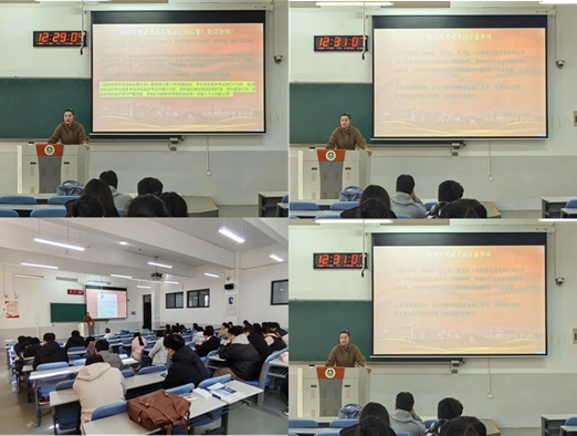 会议伊始,李艳飞老师详细介绍了研究生考试考生承诺书的内容,强调了诚信考试的重要性。她指出,诚信是考试的基石,每一位考生都应自觉遵守考试纪律,维护考试的公平、公正。随后,李艳飞老师详细阐述了考试违规违纪行为规范,提醒同学们要严格遵守考试纪律,杜绝任何作弊行为。同时,她还就考前证件材料准备、考试考场注意事项等方面进行了详细讲解,确保同学们能够充分了解考试流程,做好充分准备。在引导同学们从容应对考试方面,李艳飞老师鼓励大家要树立自信,全力以赴迎接考试,希望同学们能够在考前规律作息,调整心态,养精蓄锐,发挥出自己的最佳水平!会议最后,李艳飞老师为全体参会同学送上了金榜题名、成功上岸的美好祝福。她表示,学院将一如既往地为同学们提供全方位的支持和帮助,希望同学们能够珍惜机会,不负韶华,为自己的未来努力奋斗。