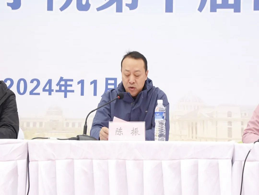院长陈振发表致辞,他对全体工作人员、裁判员表达了诚挚的谢意,向全体运动员致以亲切的问候和美好的祝愿!陈振比赛选手提出三点期望:一是希望同学们在运动中享受快乐,奋勇向前,努力拼搏!二是希望同学们在运动中厚植友谊,同心协力,团结互助!三是希望同学们在运动中收获成长,永葆热爱,追逐梦想。