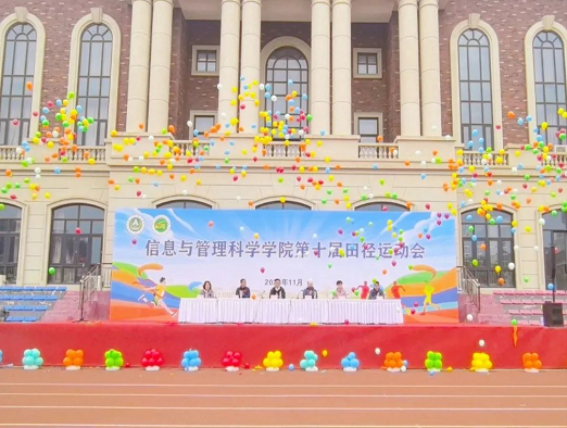 院长陈振宣布河南农业大学动漫疯 第十届院田径运动会正式开始。此时五彩的气球在微风中缓缓飞向天空,每一个气球都承载着同学们的希望与热情,如同他们在赛场上追逐胜利的决心一般坚定不移。