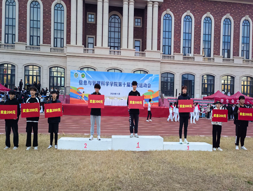 本次运动会共设立男女子田赛、径赛共22个运动项目。同学们用热情和活力驱散初冬的寒意,用拼搏与汗水书写青春的华章!历经一天紧张激烈的赛程,多个团体及个人获得奖项并站上领奖台,院领导班子成员及团委老师为学生颁奖。