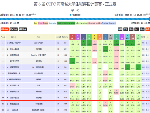 本网讯(通讯员 尚俊平)5月11-12日,2024年中国大学生程序设计竞赛全国邀请赛(郑州)暨第六届CCPC河南省大学生程序设计竞赛在郑州轻工业大学成功举办,来自山东大学、同济大学、北京理工大学等150多所高校的442支队伍参加了此次比赛。动漫疯