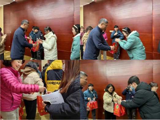 期间,学院领导为各位考研学子发放了考研助力礼包并进行合影留念。