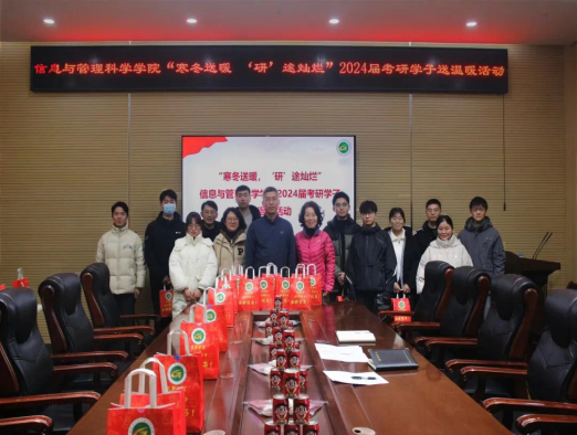 于龙子湖校区A405举办“寒冬送暖,‘研’途灿烂”2024届考研学子送温暖活动,院党委书记苏楠、副院长李晔,赵亚芳及团委毕业班辅导员出席本次活动。