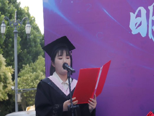 毕业生代表王亚茹同学发言,她向四年来悉心指导和精心栽培的学院老师们表示最衷心的感谢,勉励同学们牢记农大校训,传承农大精神,祝愿所有毕业同学前途光明,前程似锦。