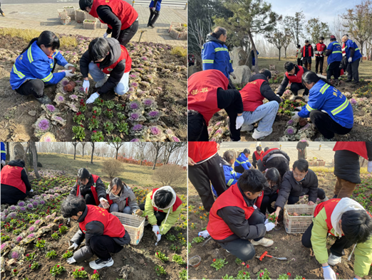 期间,学生志愿者们同东越市政工作人员及郑东绿化环卫工人进行了合影留念。