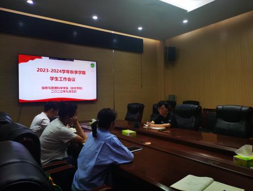 2023年秋季开学学生工作部署会议在繁塔楼A405会议室召开。院全体辅导员参会,会议由院党委副书记蔡镔主持。