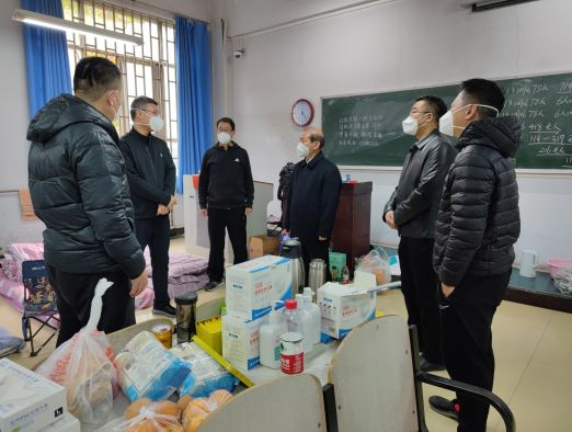 10名教工志愿者响应号召,主动报名,白衣为甲,逆行出征,用大爱守护桃李园学生公寓学生生命健康。近日,校党委书记魏蒙关,校长介晓磊,副校长郭战伟,党委办公室、校长办公室、党委宣传部、党委学工部、后勤处负责人,到教工志愿者住宿地看望慰问,关心大家生活工作情况。