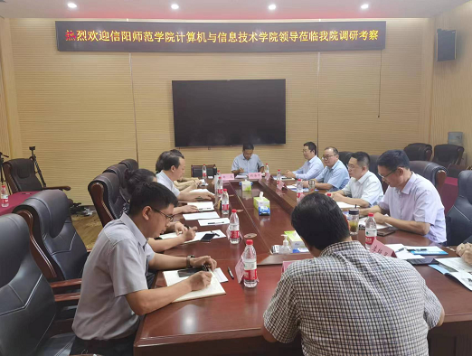 会上,陈振院长首先对信阳师范学院计算机与信息技术学院一行领导的到来表示了欢迎,并详细介绍了学院在专业建设、学科建设、师资队伍建设、专业发展规划、人才培养、学科平台以及软件学院等方面的发展情况。