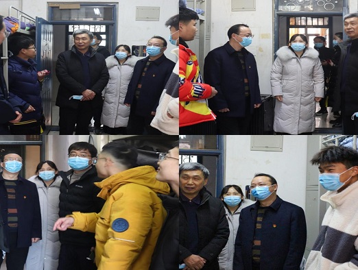 2月20日,院党委书记马新明、院长陈振、院党委副书记张利军、副院长乔红波在学生返校之际深入学生宿舍走访慰问。老师们提醒学生疫情期间注意个人防护和寝室卫生状况,注意开窗通风、出入场所戴口罩等;询问了同学们寒假特别的经历,勉励同学们多参与社会活动增加经验;嘱咐大家尽快调整好优良的作息,为新学期上课做好准备。同学们踊跃发言,畅谈自己的寒假生活体会,并就学习情况、日常生活、未来规划等方面进行亲切交谈。
