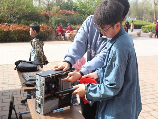 在社区工作人员的安排下,电脑120团队成员摆好桌椅、撑起帐篷,布置好活动场地。活动开始后,同学们为前来维修的居民解决了电脑清灰、网线安装、电脑重启、系统重装等一系列问题,遇到不方便带到维修点的台式电脑问题时,同学们上门为居民进行义务维修,保证为每一位前来寻求帮助的居民妥善解决问题。活动结束后,团队成员仔细核对了每一台受助电脑的维修信息记录,确保没有遗漏和错误,并认真打扫了活动场地。同学们高超的维修技术和细致周到的服务赢得了生活区居民的高度赞扬。