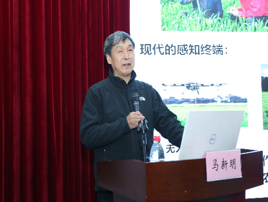 马新明以《小麦基本苗与成穗数的检测方法》为题,就小麦生产地位与现状、小麦群体监测的作用、小麦群体检测技术研究三个框架作了精彩报告。