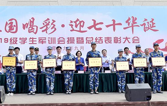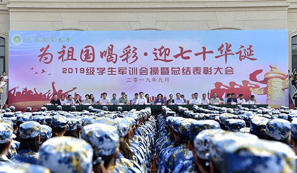 “为祖国喝彩·迎七十华诞”2019级学生军训会操暨总结表彰大会分别在龙子湖校区和许昌校区举行。动漫疯