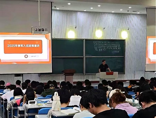 于龙子湖校区繁塔楼大教室二召开毕业生征兵入伍宣讲会。2025届全体毕业生参加,本次宣讲会由院团委老师赵奥佩主持。