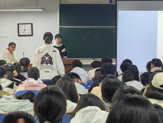 随后,集训队成员王浩宇组织新生问答互动。活动中,同学们全程专注聆听,不仅主动提出疑问,在互动答题环节更踊跃参与、积极响应,现场氛围热烈高涨,充分展现出对算法竞赛的浓厚兴趣。