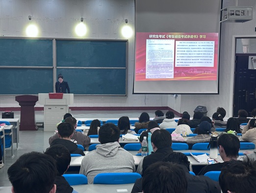 于繁塔楼大教室二召开2026届考研诚信动员会。本次动员会由22级辅导员倪天娇主持,22级全体学生参加。
