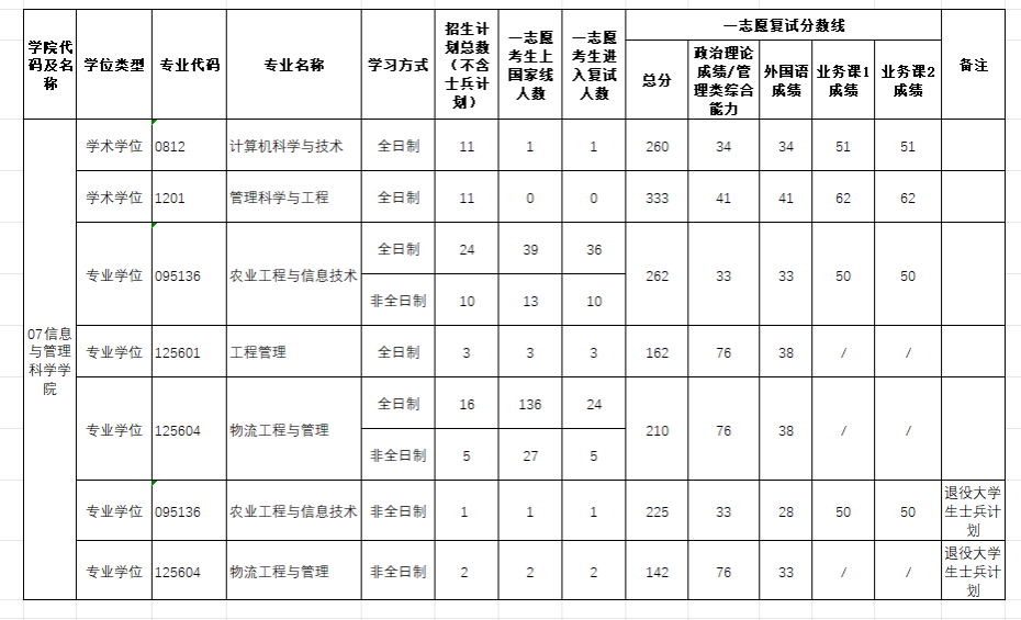 初试成绩符合以下条件的考生具有复试资格,招生计划数根据各学科实际招生人数可能有所调整。