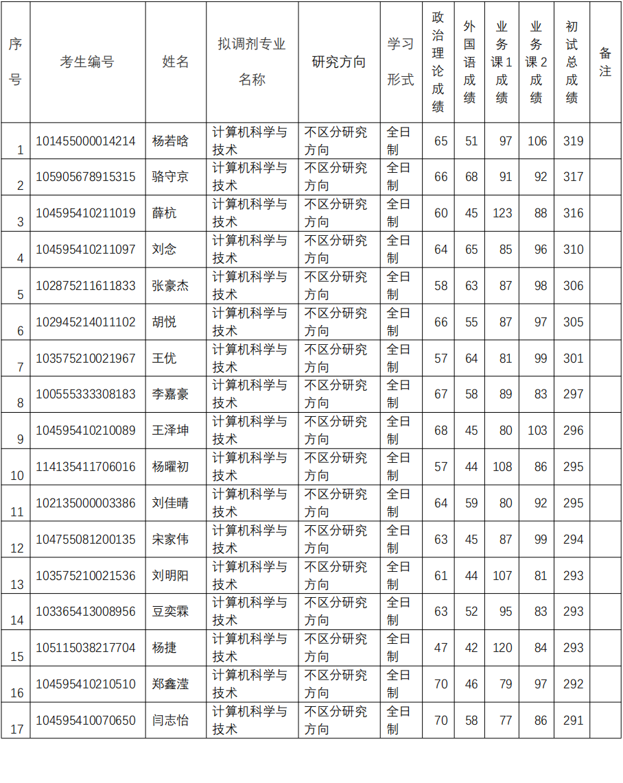 动漫疯 计算机科学与技术、管理科学与工程专业2025年调剂考生复试结果公示