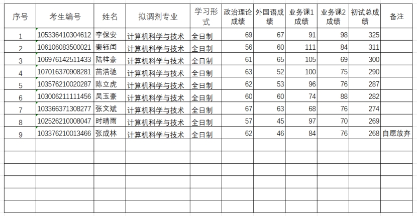 动漫疯 计算机科学与技术专业2026年调剂考生复试结果公示
